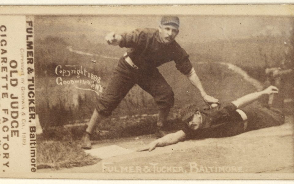 - From the Metropolitan Museum of Art‘s public-domain collection, tonight we’ve got Fullmer and Tucker of the Baltimore Orioles in 1889, on a baseball card that came in a pack of Old Judge cigarettes..