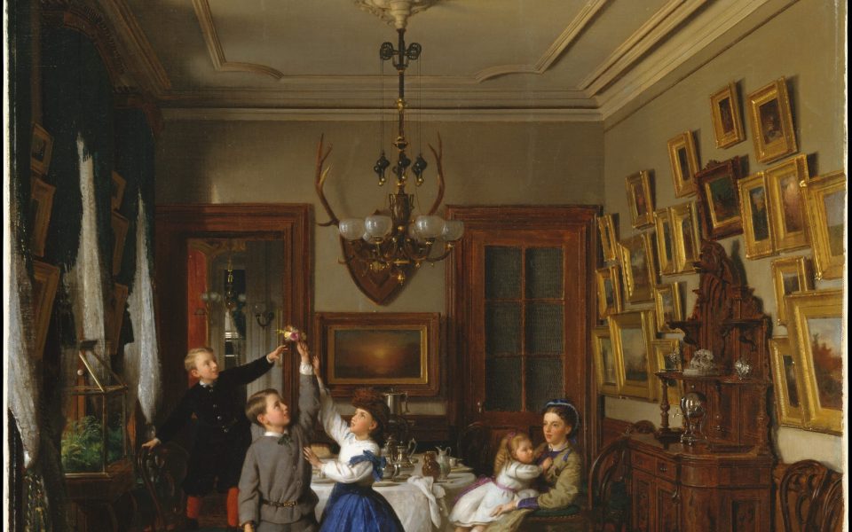 - Tonight’s featured image is a “The Contest for the Bouquet: The Family of Robert Gordon in Their New York Dining-Room,” by Seymour Joseph Guy, 1866. Taken from the Metropolitan Museum of Art’s public-domain collection.
