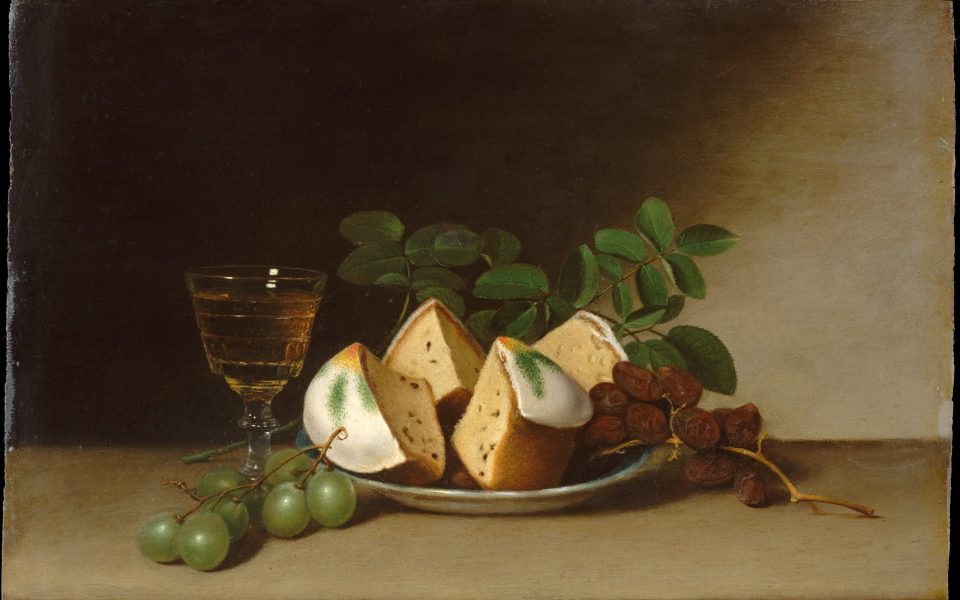 - From the Metropolitan Museum of Art‘s public-domain collection, tonight we’ve got “Still Life with Cake,” by Raphaelle Peale, 1818.