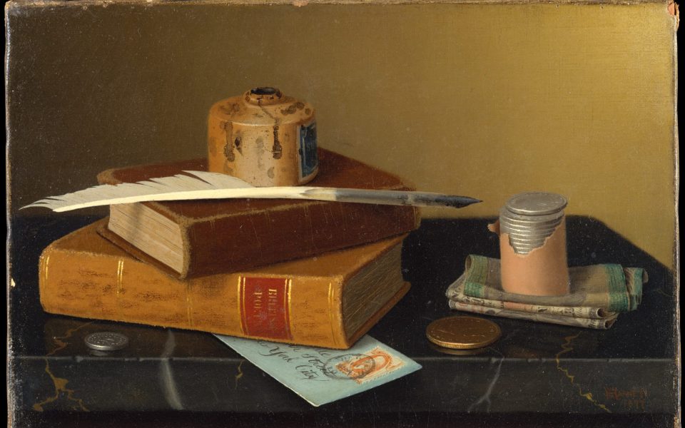 - For tonight’s featured image, we’ve got “The Bankers Table” by William Michael Harnett, 1877. Taken from the Metropolitan Museum of Art’s public-domain collection.