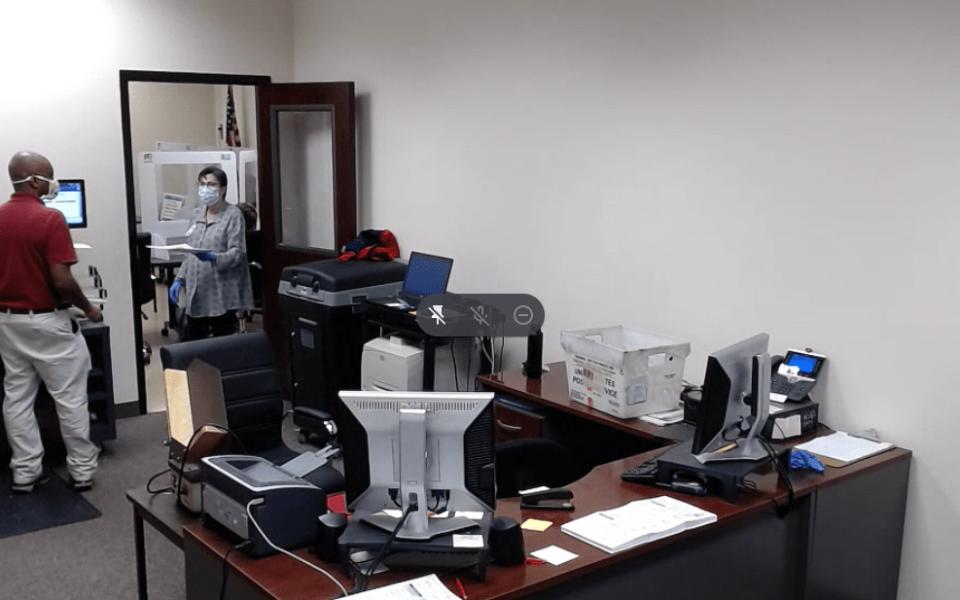 Photo: Forsyth County Board of Elections Chair Susan Campbell delivers ballots to a staff member for tabulation. (screenshot)