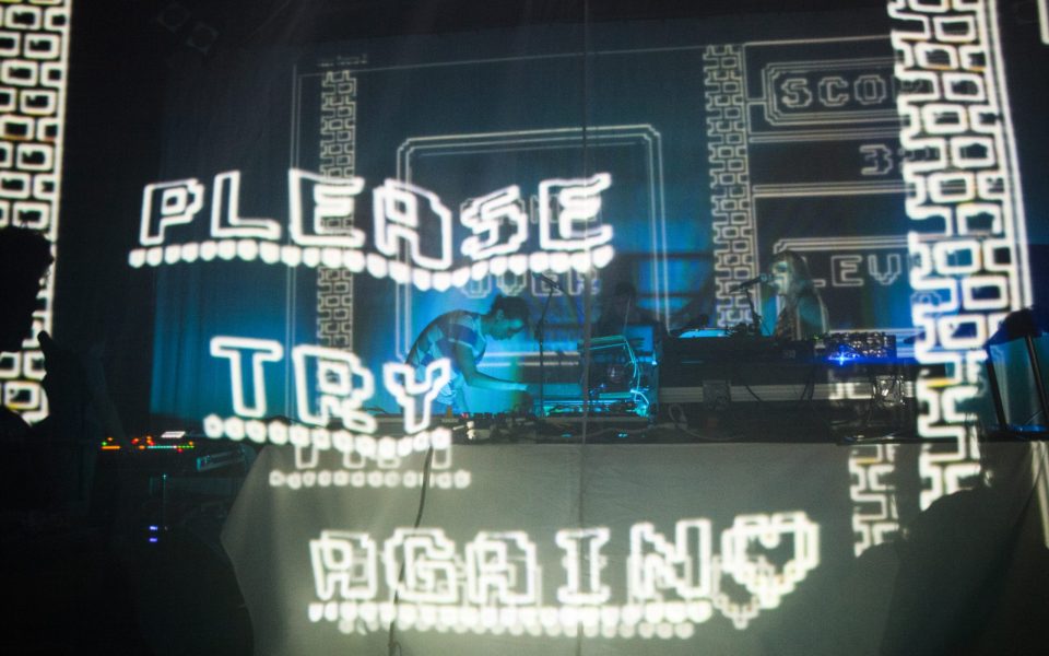 Another song jumped off with a relentless kosmiche — a quick history lesson: the term refers to the German psychedelic offshoot that laid the groundwork for disco — beat and strains of dissonant Velvet-esque guitar, all of which would melt into a droning soup, still retaining fairly conventional vocal structures. The words “more more more” playing across the screen significantly enhanced the experience, with falling Tetris combinations and an old-school video-game format providing an epiphany. “Game over — please try again” is a fitting message from a group that calls itself Body Games.