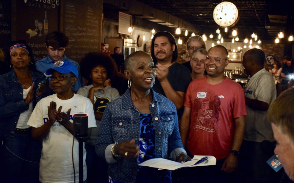 “I understand the dynamics of the real world,” Adams said while celebrating her primary victory at Vintage Sofa Bar in Winston-Salem. “I understand I live in a Trump state and a Trump district, but I believe and… it’s going to take all of us believing. At first, when I would tell people I was gonna run, they said, ‘You can’t win.’ But where would we be as a country, as a world if there were not some of us that believed and hoped and dreamed?”