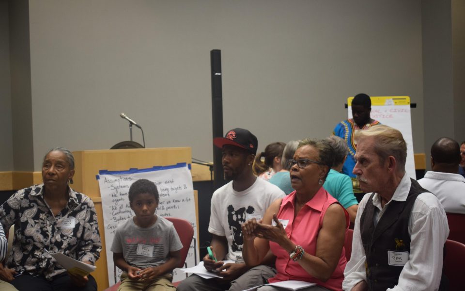Steering committee members facilitated working groups on four areas of concern: criminal and civil justice; economic justice; environmental justice; and social justice.