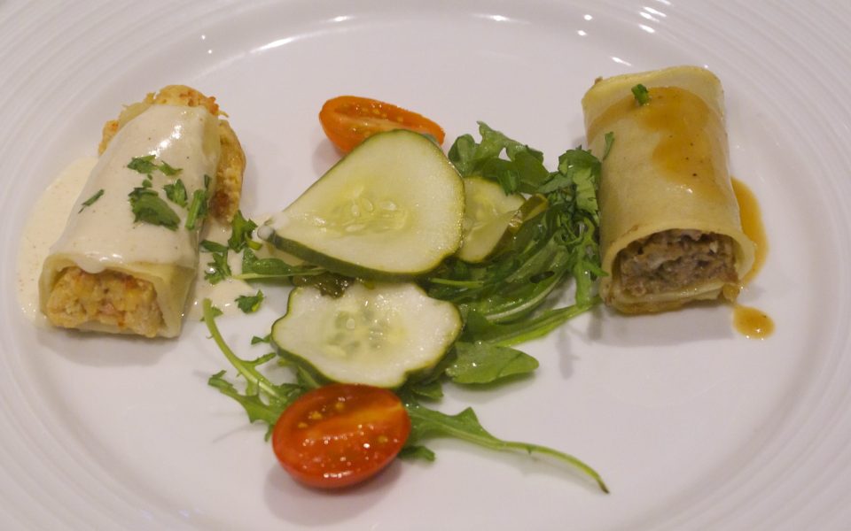 Unlike his competitor, Myers’ first course combined the surprise ingredients rather than presenting them separately, almost like a sample plate lacking cohesion. The boudin, tzatzki and cucumbers was a bolder, more creative decision and, better yet, it tasted great.