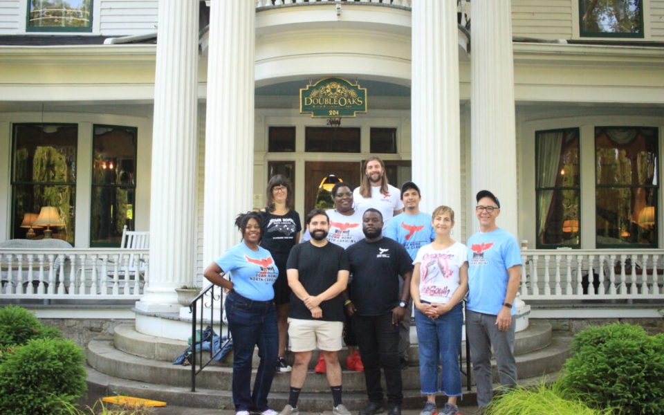 Featured photo: Members of Down Home NC’s staff pose in front of the Double Oaks B&B in Greensboro. (courtesy photo)