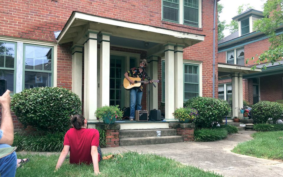 In the eye of last weekend’s rainstorm, the historic Dunleath neighborhood came alive with the sound of banjos, mandolins and acoustic guitars. Kids scrambled to the nearest backyard with a playset while their parents and other couples strolled streets shaded by old trees. Some carried lawn chairs and red Solo cups filled with light beer. The humidity was in full force — it felt like walking through a giant cube of warm Jell-O, but nobody seemed to mind.