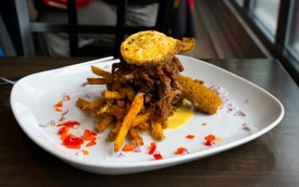 Brisket over truffle fries @ 1618 Seafood Grille (GSO)