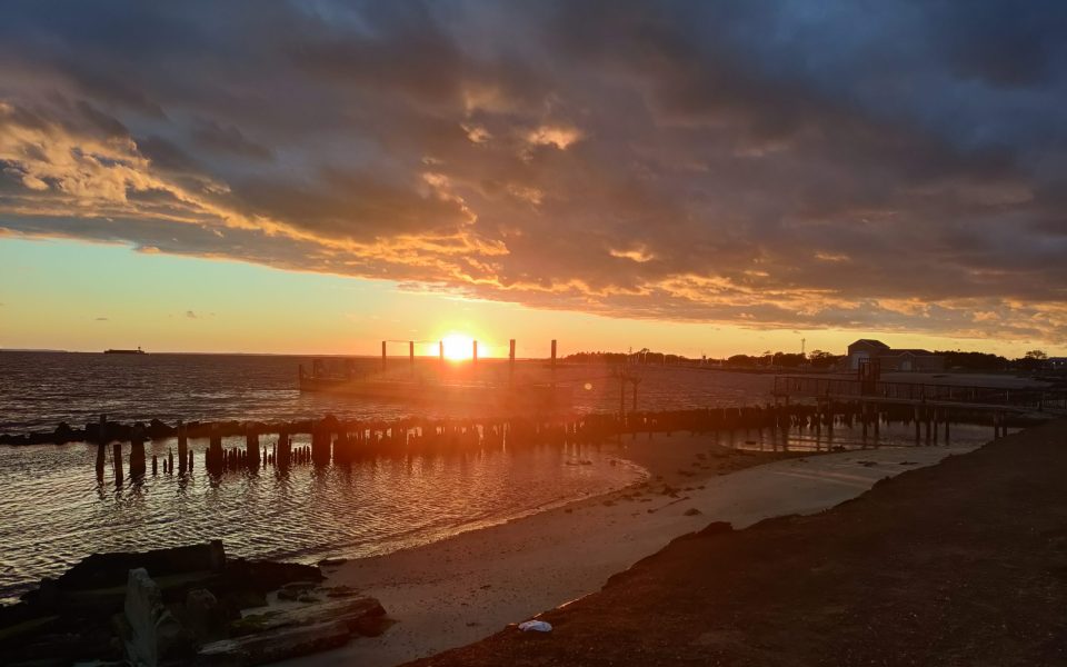 My mother misses his presence at the wedding, I can tell. We all do. But it’s tough to mourn the dead when there’s so much evidence of life here on the shoreline: Pregnant women, new babies, young love, a forever promise, a full dance floor and the tide rolling out and then in, a spectacular sunset breaking through low clouds to paint the sky electric.