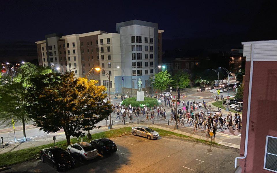 I was out there because earlier in the day, I had been moved to tears by Associate Editor Sayaka Matsuoka’s live footage of the earlier protest, the one that marched down Gate City Boulevard and shut down Interstate 40 while Greensboro Police held traffic so no one got hurt. I was bringing her a phone charger so she could continue her coverage, but somehow ended up out there myself.