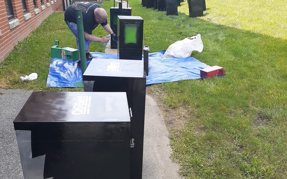 We started doing this because I refused to pay full price for brand-new street boxes with slick wraps or professionally designed logos, which can go for $300 apiece. Why would I, when there were thousands of used ones just sitting around, and so many newspapers on the brink?