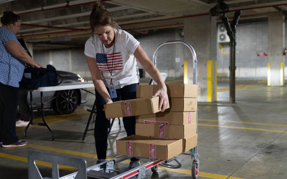Featured photo: Election workers in Guilford County transport ballots on election night in 2020. (photo by Carolyn de Berry)