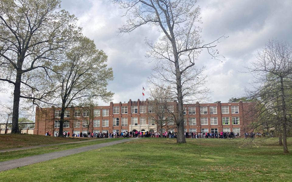 I was late so I jumped in my car and drove around the block where I hit Josephine Boyd Blvd. Immediately, I was met with the sight of hundreds of high school students standing outside on Grimsley High School’s campus; there was a sea of them.