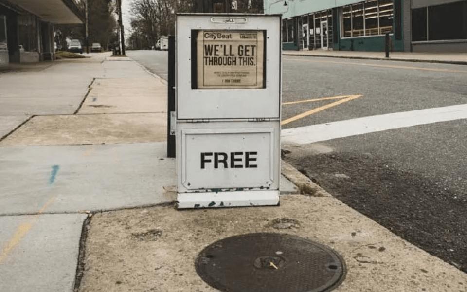 Featured photo: A Triad City Beat newspaper box off of Walker Avenue in Greensboro taken by Carolyn de Berry during the COVID-19 pandemic. (photo by Carolyn de Berry)