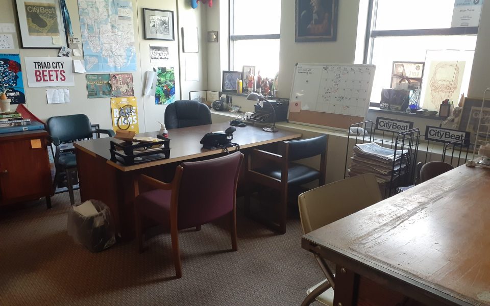 My wife and I spent half of Saturday cleaning this space, which like a lot of offices has lain dormant for more than a year. Unlike a lot of offices, this one hadn’t been properly cleaned since we moved in seven years ago. We carted reams of old newspapers down to the recycling bin. We filled a cabinet with archives collected through the years: photoshoot props, original sketches for covers, a stack of CDs containing Eric Ginsburg-era records requests. I used my shop-vac on the carpet. Each layer of filth and grime that came off brought back flashes of the last seven years: our first award, Eric and Jorge’s soccer ball, a sketch of my wife and me posed like “America Gothic.”