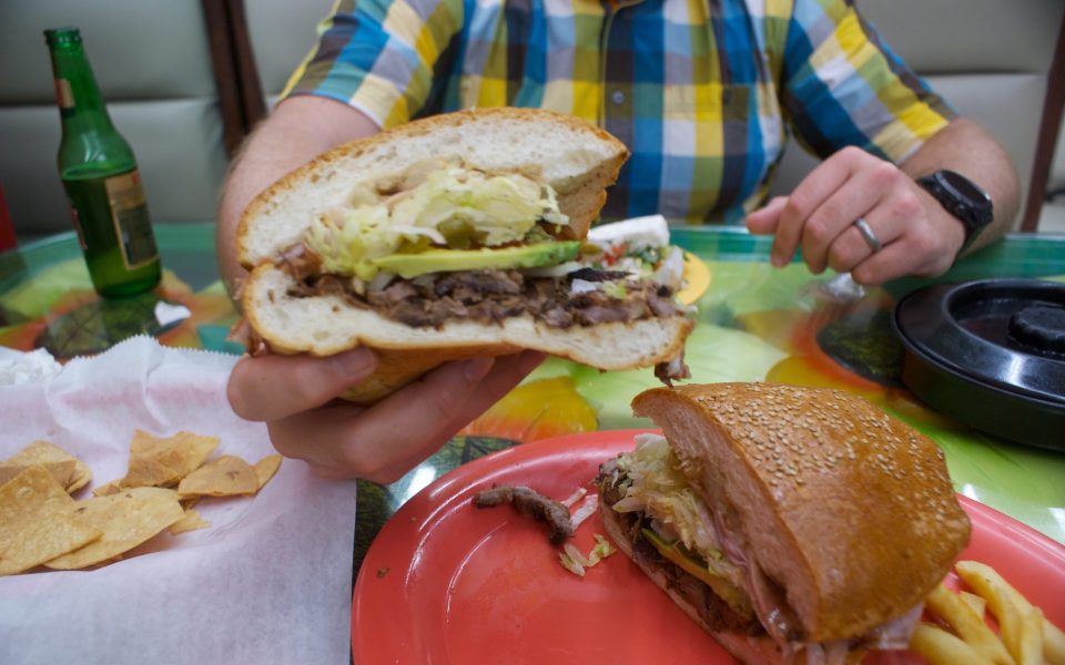I went with a friend Monday night, peering at the Mexican baked goods, ice cream and butchery before snagging a seat towards the back, where San Miguel provides table service. Our server recommended the tortas — massive sandwiches — and as an unashamed and long-time fan of Hawaiian pizza, I picked the Torta Hawaiiana, which comes with beef, avocado and more in addition to the obvious ham and pineapple.