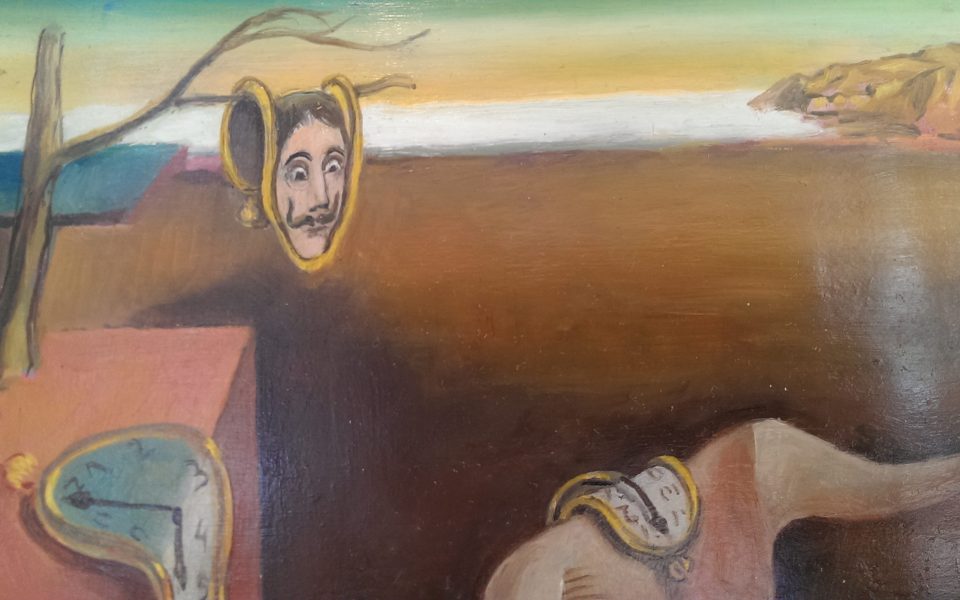 This portion of the gallery only houses works by Janschka, whose style is strikingly different than the first half of the exhibition. They are sketchy and colorful, reminding viewers of Picasso’s style. Many of his sketches, paintings and sculptures depict famous artists such as Hopper, Chagall, Pollock and Kahlo in amusing and cheeky contexts with personalized quotes beneath each one. Mona Lisa sits in her familiar landscape but as a nude. Frida Kahlo’s face appears superimposed on the body of an injured deer. Dalí hangs from a tree as one of his own melting clocks.