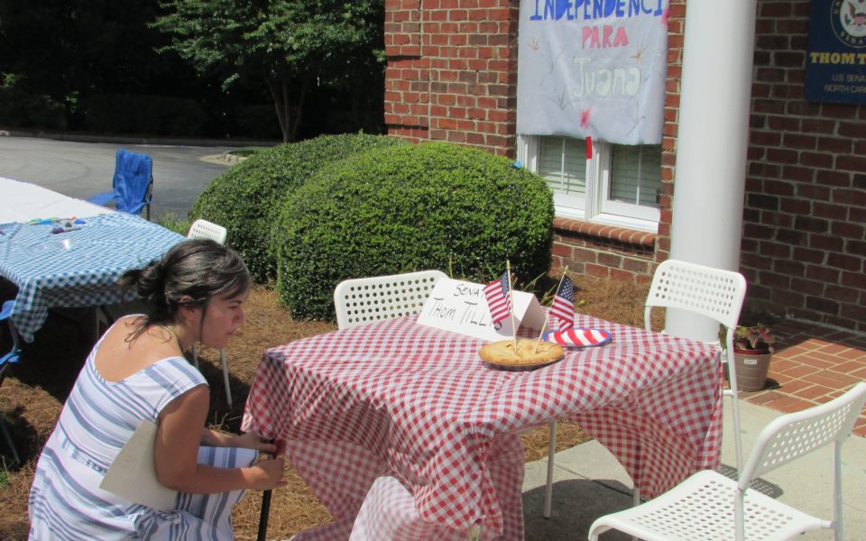 “We’re basically saying, ‘We’re here, we’re not going to go anywhere, we want to meet with you and just answer our questions,’” Molina told supporters in front of Tillis’ office on July 4. “‘Do you think our mother should be deported? Do we deserve this? Does her family deserve to be separated?’ That’s why we are here today, and that’s why we brought the cookout here to his office. Because we have not had any concrete answers from his staff.”