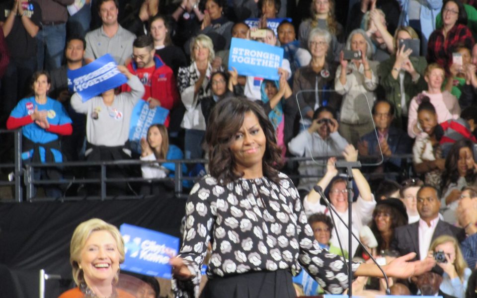 Obama closed her speech by highlighting the state’s crucial role in the election, noting that her husband carried North Carolina by only 14,000 votes in 2008, but lost it to Mitt Romney in 2012.