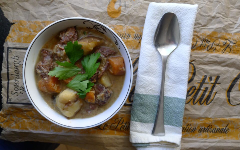 Sourdough Stew resembles a classic, simple meal: a bowl of soup and a piece of bread. Except in this case the bread seemed to have thought it was a bone, and snuck itself into the stock pot. When you try this rich, slightly tart, chunky stew, you will be glad it did.