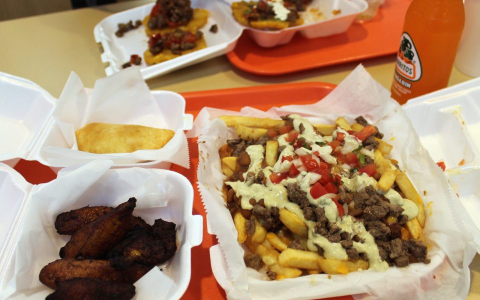 But the menu has roots across the region: ropa vieja and a Cuban pork sandwich hailing from the quasi-communist island nation, arepas and bacon-wrapped “Sonoran” hot dogs (a Mexican state along the US border). There’s pollo guisado, a chicken stew that apparently has roots or versions around the Caribbean including Puerto Rico, Cuba and the Dominican Republic. Patrons can order Baja fish tacos, pick between five kinds of salsa including a pink one or the house that pairs with the Colombian empanadas, build their own burrito for under $5 or even walk away with two hot dogs, fries and a drink for a five spot.