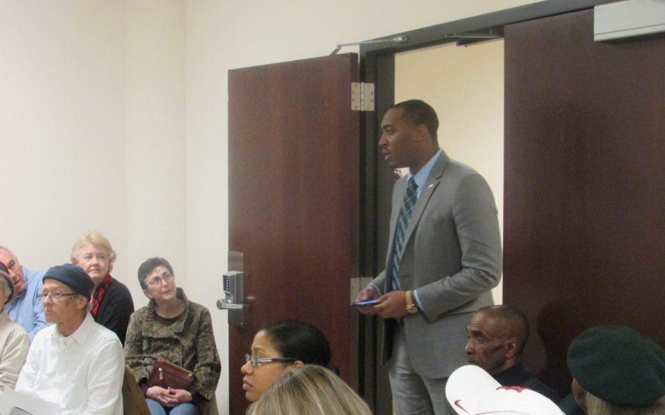 Kyle Brown, student government association president at Winston-Salem State University, addresses the Forsyth County Board of Elections.