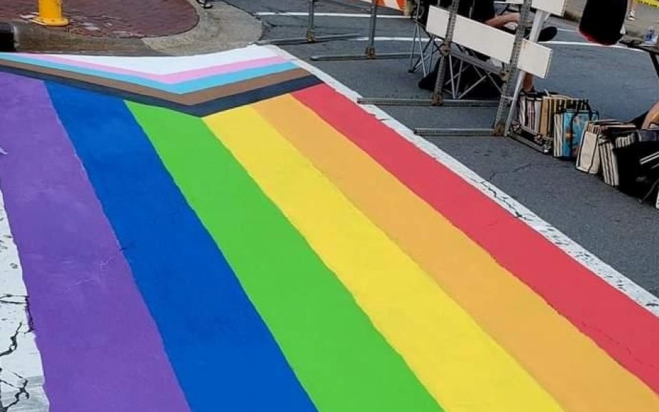 Featured photo: Winston-Salem’s painting of the new Pride mural downtown went off without a hitch. (photo by John Armbruster)