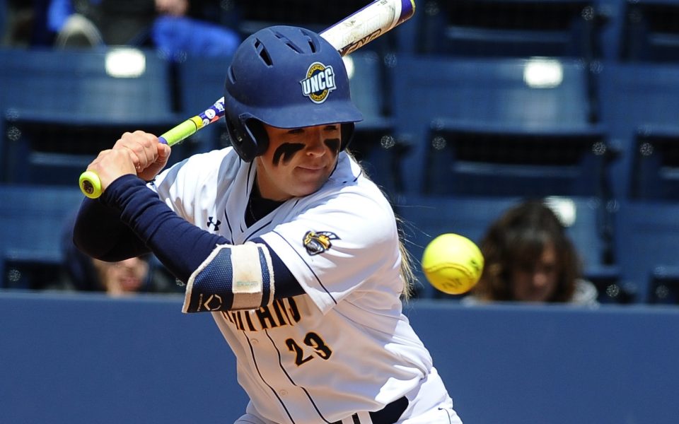 Taylor Swift’s “Shake It Off” spat out of UNCG Softball Stadium’s PA speakers on April 9 during the third-inning break. Tiny centerfielder Allison Geiner then recorded the Spartans’ first hit in the front end of this double-header against the visiting Mercer Bears in UNCG’s Southern Conference homecoming. Even that base hit came challenged as Mercer first baseman Katie Peterson caught the high throw only by vaulting off the bag, granting Geiner a wrinkle in time.