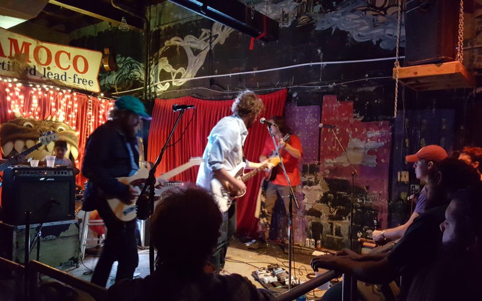 By midnight, the crowd had thinned significantly, with many of the fans who had turned out to see two local acts debuting new material departing. The members of Futurebirds didn’t seem deterred, showing themselves to be all the more resolute about putting on a great show for the rabid fans who stuck around and danced with drunken abandon. One of them, who had been staggering moments earlier, became so inspired that he climbed on his friend’s shoulders before the sound tech intervened.