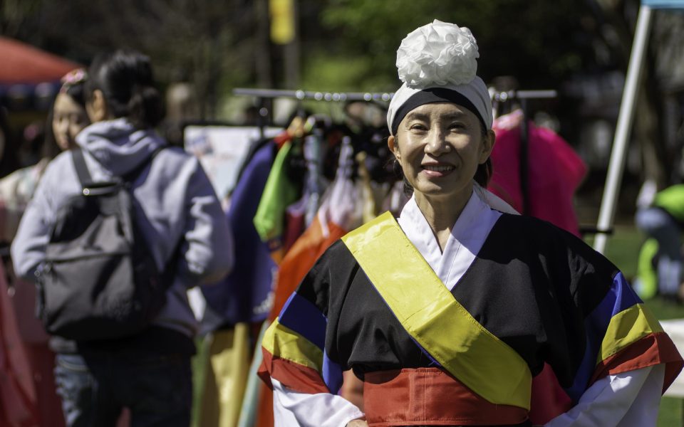 Featured photo: Ghana Jeong wears traditional Korean cloth at the NC Korean Festival, Greensboro, April 6, 2024.