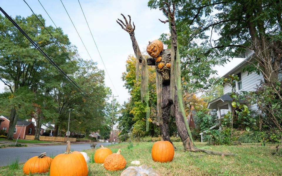 Featured photo: The pumpkin king towers over a front lawn in Greensboro at the corner of Walker and Scott Avenues. Photos by Carolyn de Berry, James Douglas and Jasmines Gaines