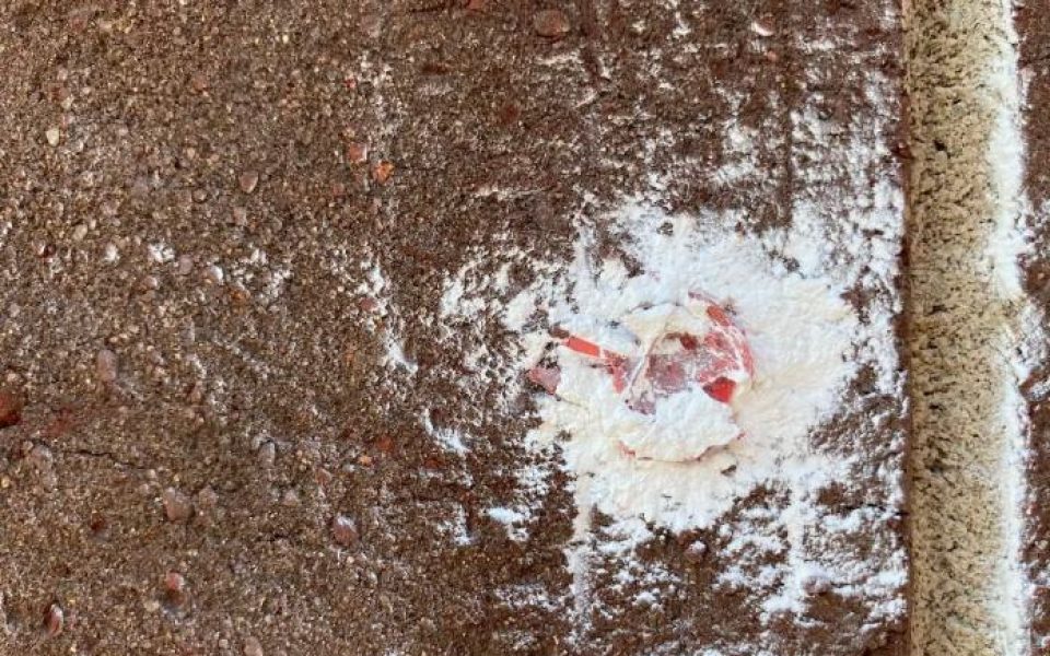 Featured photo: Remnants of a pepper bullet lodged in the Egerton Law offices building