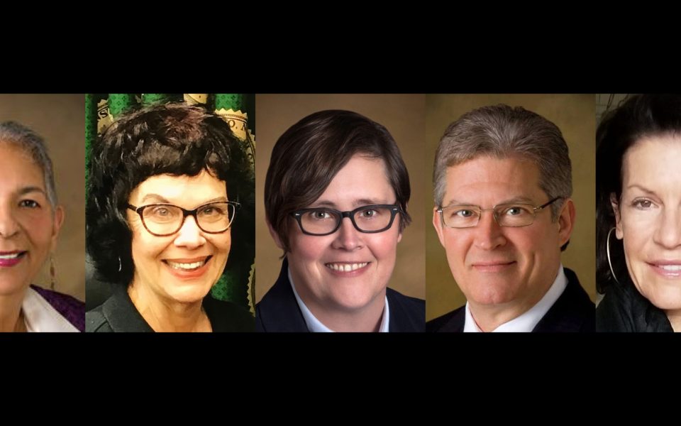 Yvonne Johnson, Marikay Abuzuaiter, Michelle Kennedy, Tony Wilkins and Katie Rossabi (l-r) have all either confirmed plans to run for the three at-large seats on Greensboro City Council or indicated they’re considering.