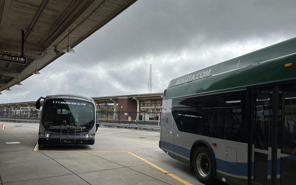 Featured photo: Buses parked outside of the bus station in downtown Greensboro (photo by Gale Melcher)