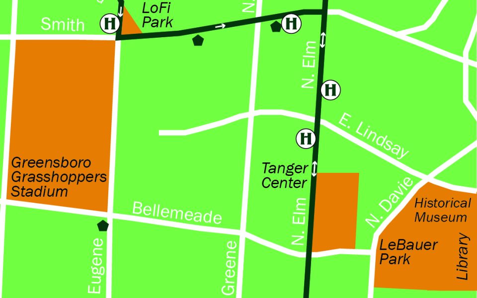 The trolley route will run along parts of Elm Street and arrive at stops every 5-7 minutes near places such as the South Elm Street/Union Square area, Broach Theatre, the Civil Rights Museum, the Tanger Center, Center City Park and the LoFi Park area, including several major downtown employers. The route will also connect riders to several existing Greensboro Transit Agency routes.