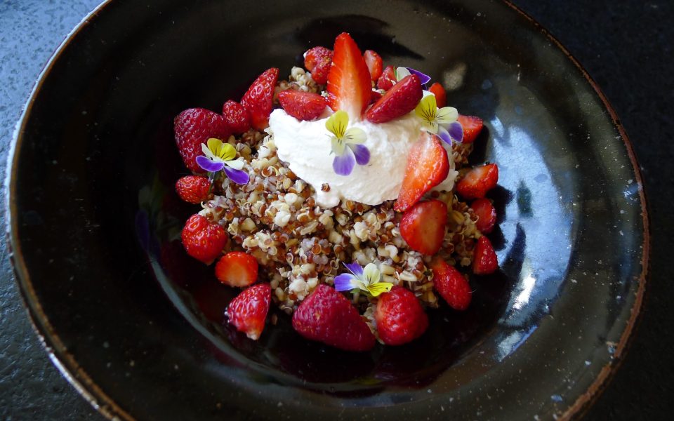Based on a mixture of quinoa and steel-cut oats, Sara tweaks her potage with smaller amounts of other grains like sunflower, hemp and chia seeds. It forms a thick matrix of grains that are not overcooked, with the right amount of resistance to the tooth.