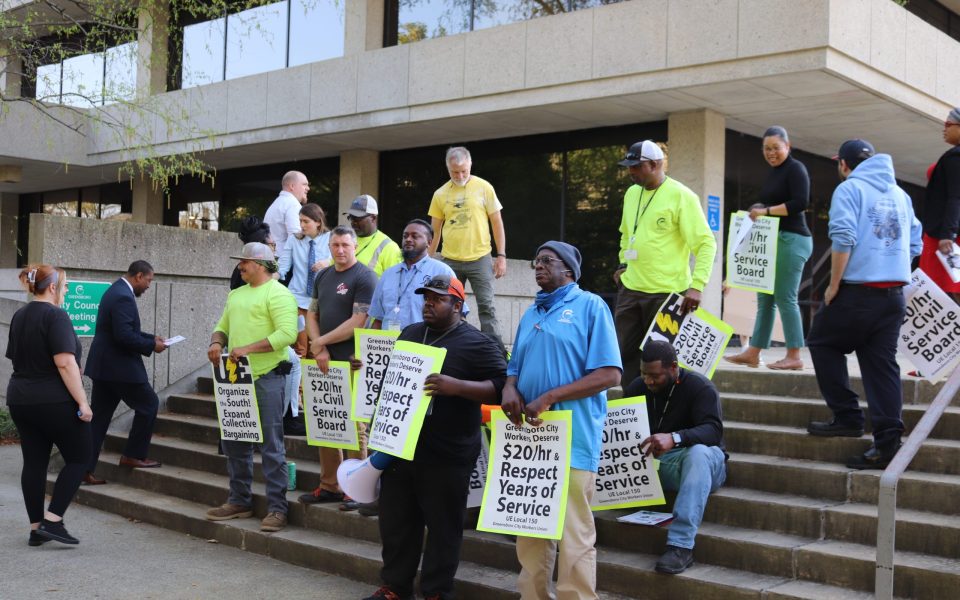 In an interview with TCB, UE representative Dante Strobino said that the main departments in Greensboro’s union are field operations and water resources workers, but that some workers in the libraries, parks and recreation, and engineering and inspections were attending the protest as well.