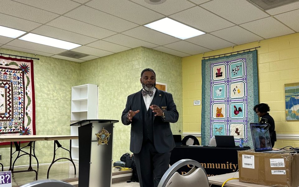 Featured photo: Guilford County Sheriff Danny Rogers speaks at a town hall in Greensboro on Nov. 9, 2023. (photo by Gale Melcher)