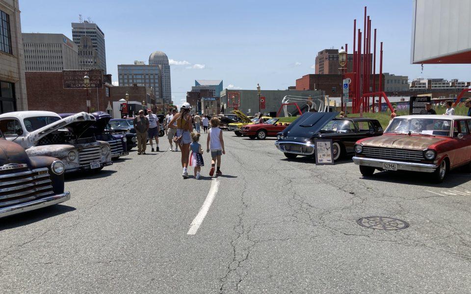 The car show itself, the central event, spanned several blocks and blocked off several streets. There were cars that seemed to come straight from a black-and-white film from the 1920s, several painted neon colors like blue or yellow and others still with sculls or flame prints. A few cars had open doors so event attendees could check out the insides.