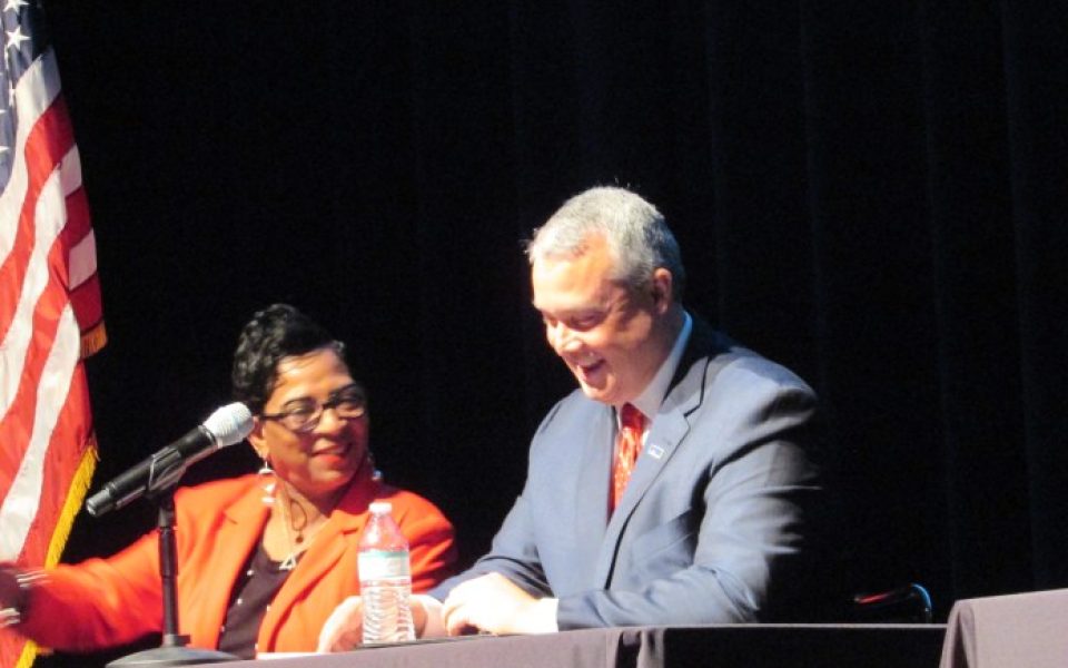 When it came time for Carlvena Foster, Wagner’s opponent, to speak, she asked the moderator to repeat the question. “Concluding statement,” he said. “Oh, I was listening,” Foster said, as she attempted to regain her footing. “It was enthralling, wasn’t it?” Wagner said, displaying a wide grin.