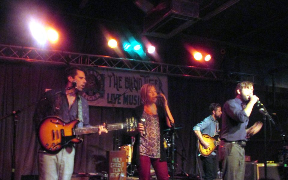 During a recent homecoming concert at the Blind Tiger on Nov. 20, the band opened with “Walking Over My Grave,” a track from their 2008 debut album, So Long I Screamed. The original song is a coarsened dandy’s jaunty dismissal of a love gone awry, but Holy Ghost’s recent reworking gave it a fierce energy matched with organic warmth. The rhythm section of drummer Ross Montsinger and bassist Kevin Williams supplied a dynamic crunch, while guitarist Matt Martin’s thin, wild tonality proved him to be an able pupil of the Band’s Robbie Robertson. Trumpeter Charlie Humphrey and trombonist Hank Widmer augmented the band as a powerhouse horn section.