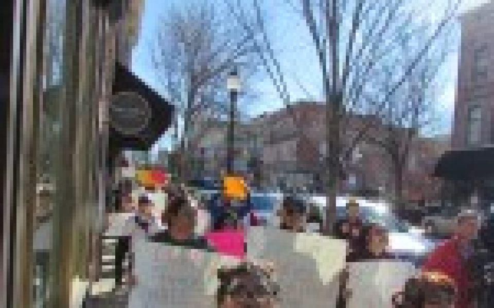 Chanting Trump escucha, estamos en la lucha — “Listen up, Trump, we’re in the struggle” — about 100 Latino immigrants marched from the Central Carolina Worker Justice Center to the International Civil Rights Center and Museum in downtown Greensboro to observe the Day Without Immigrants.