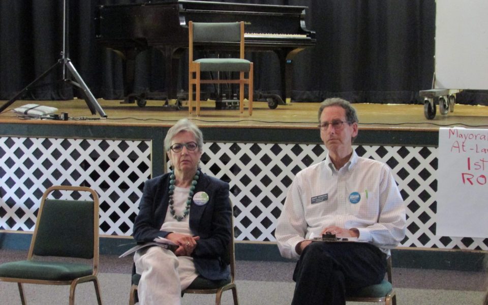 About 150 people filled the auditorium for what was billed as a “candidate/platform conference,” in which candidates were invited to address the platform and tell the audience how they would implement it. Two candidates for mayor, excluding incumbent Nancy Vaughan who did not attend, and 11 out of 15 at-large candidates addressed the platform and responded to questions from the audience. Roughly 30 people remained for the breakout session for District 4 when Hoffmann made her remarks.