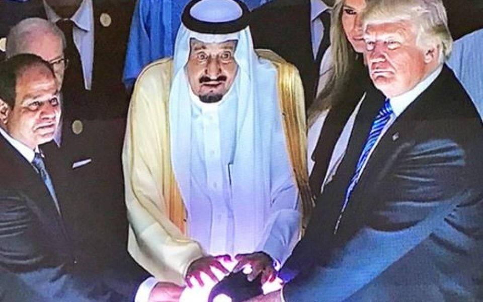The president of Saudi Arabia, by the way, is that guy standing next to Trump in the photo where they all have their hands on that glowing orb.