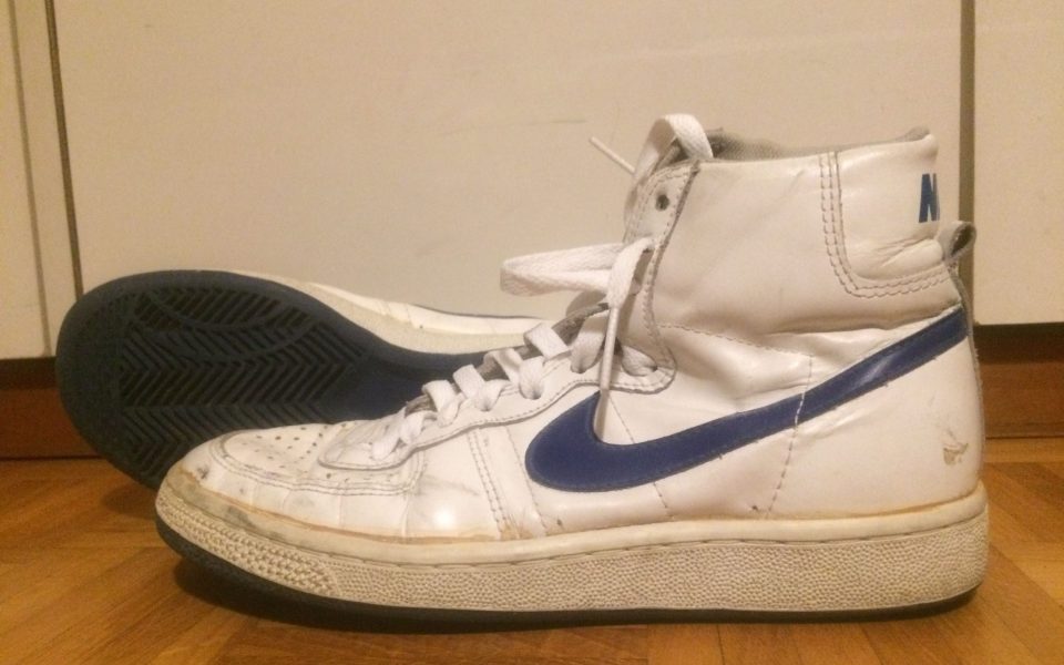 Back in ’83, Nike Legends were the preferred footwear of the white suburban boy. I got the sweet white hi-tops right before Christmas, with the perforated toe piece and the navy blue swoosh. I adored them as much as a 13-year-old boy has the capacity to adore. And I believe they saved me from at least one beating, by a ninth-grader who found me outside the town library one afternoon and, instead of making me eat my overdue library books, commented on the sneaks.