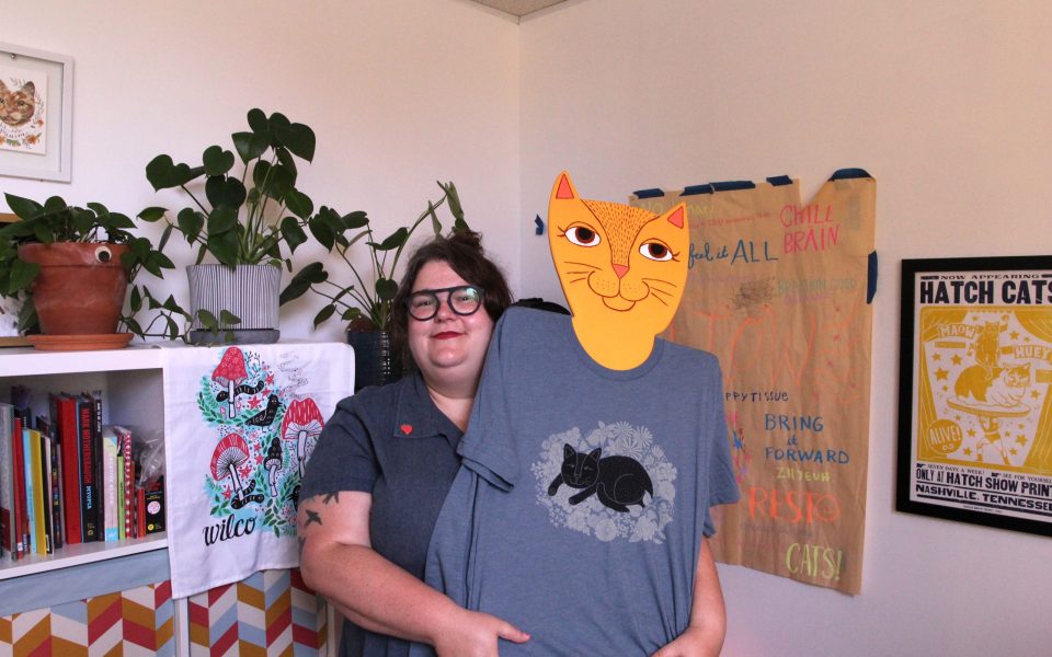 Lamp has also been focused on her online store, currently stocked with T-shirts of her own design featuring black cats and enamel pins in the shapes of animals, trees and fruit, among other things. And though she plans to continue updating her store, she is glad to get back to music posters. She is not sure where her career will go from here, but she is excited to find out.