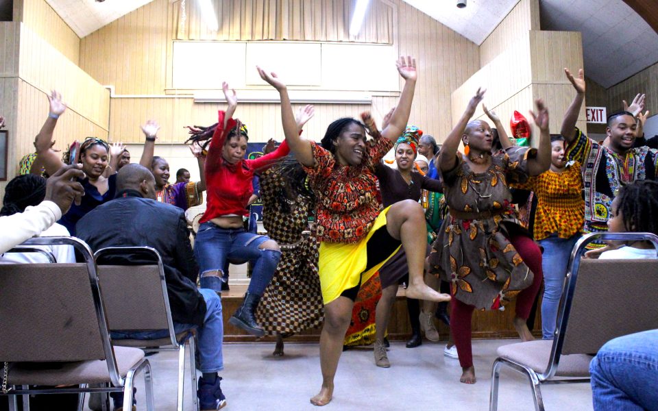 Dancers with the Kuumba Dance Company celebrate at the Kwanzaa celebration (photo by Sayaka Matsuoka)