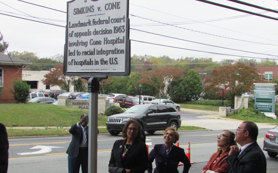 That oversight was corrected on Tuesday with the unveiling of a new highway marker outside Cone Hospital by the state Departments of Cultural Resources that reads simply: “Simkins v. Cone: Landmark federal court of appeals decision 1963 involving Cone Hospital led to racial integration of hospitals in the US.”
