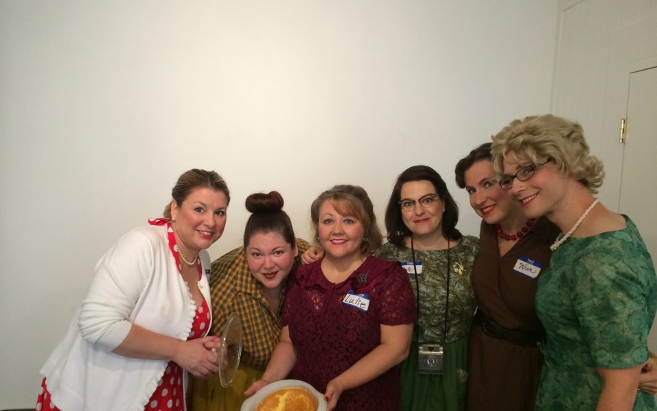 The performance is set in an anonymous 1956 American town during the annual quiche breakfast held by the Susan B. Anthony Society for the Sisters of Gertrude Stein. The group’s central activity is the adoration and devouring of the most sacred of savory pastries: quiche. Their motto is, “No men, no meat, all manners.” That is to say, bringing a quiche that contains meat is highly frowned upon by the Sisters of Gertrude Stein.