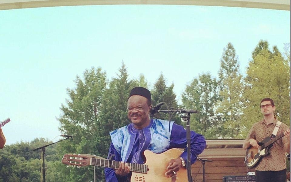 As the drums and dancers cleared the stage and new equipment took their place, Cheick Hamala Diabate sat at the front of the stage. Surrounded by a myriad of instruments laid at his feet, he plucked into the opening song, and the conversations that had arisen between sets were silenced. Holding his guitar in the classical tradition, the melodies echoed across the hill. The full band behind him dove into the rhythm, and truly, the evening began.
